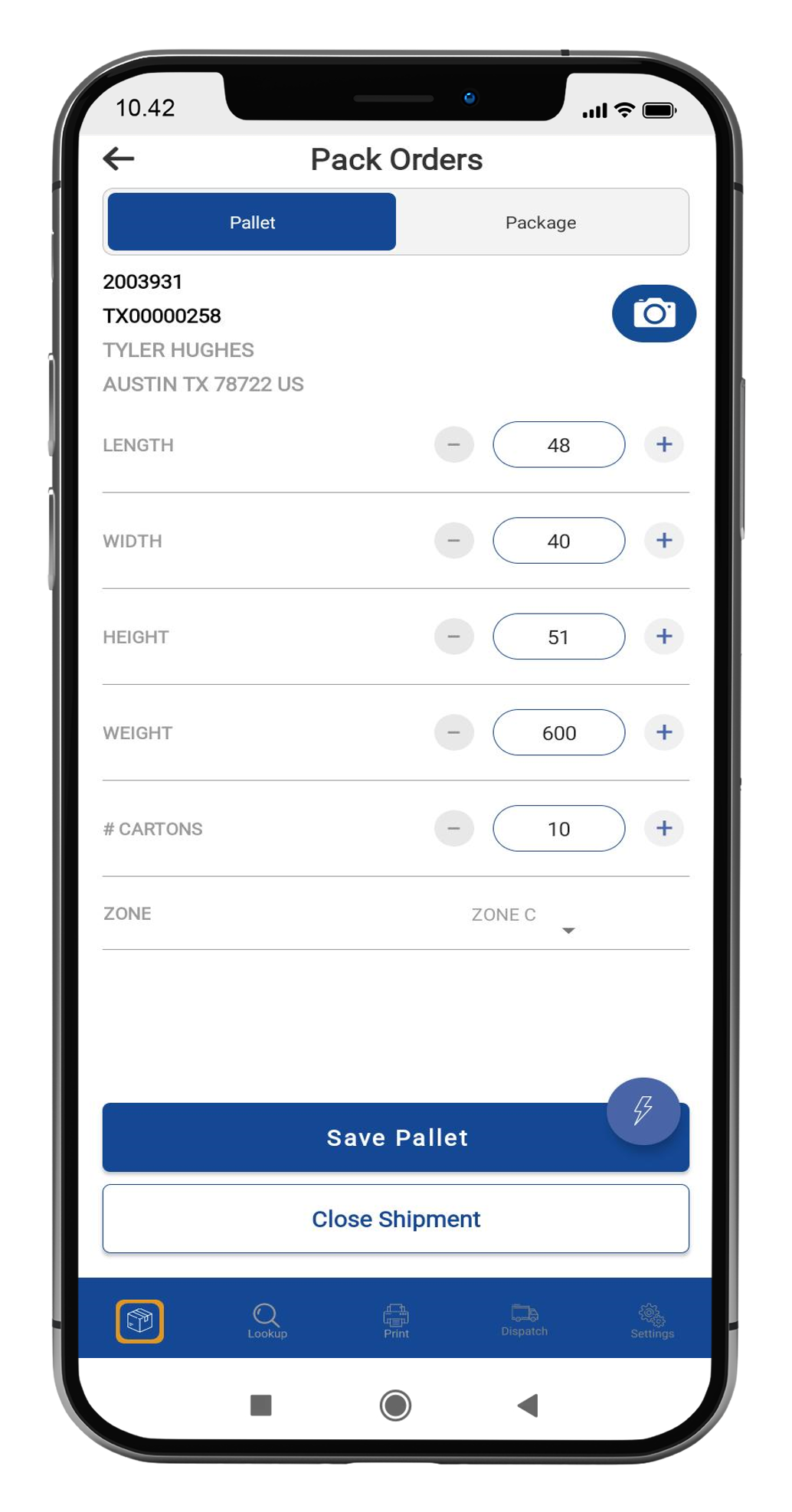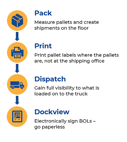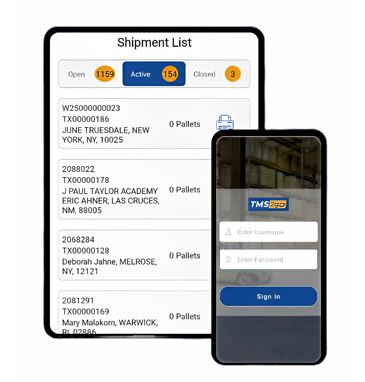 No more walking back and forth to the shipping office to get paperwork. Or manually writing the pallet information and dimensions paperwork. Easily print labels while standing right next to the pallets or packages using TMS2go. Efficiency and simplicity now at your fingertips!